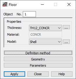Когда диалоговое окно «Перекрытие» полностью открыто, то при нажатии на одну из трех кнопок («Метод назначения», «Геометрия» или «Параметры») сворачивается соответствующая часть окна. Таким образом, в диалоговом окне отображаются только те параметры, которые необходимы пользователю в данный момент. Если нажать одну из кнопок в уменьшенном окне, оно увеличится.