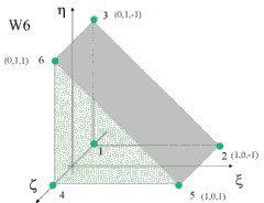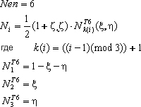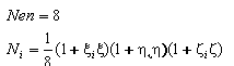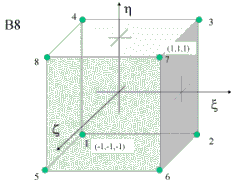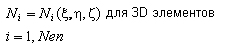 Следующие типы элементов: кирпич B8, клин B8 и тетраэдр T4. Ниже в таблице представлены функции формы и нумерация узлов, связанные с базисными трехмерными элементами.
