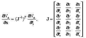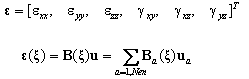 Производные функций формы в элементах матрицы B определены как: