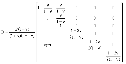 Где e о наложенные деформации (тепловое расширение и сокращение), в то время как D – образующая матрица; матрица упругих свойств D (линейно - упругий изотропный материал) представлена ниже