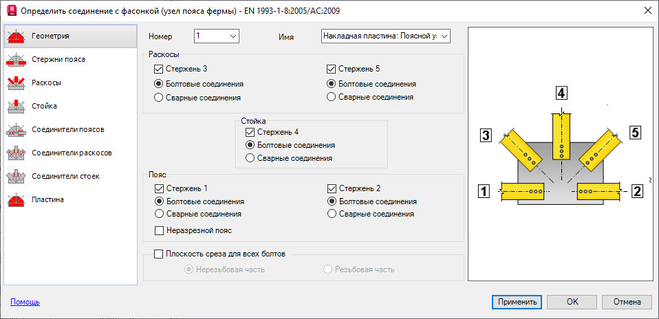 стержни, включенные в соединение;