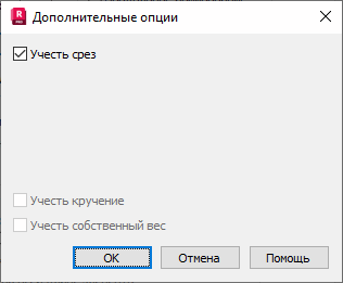 Опции Учет кручения и Учет собственного веса не доступны ни для каких-либо других норм.