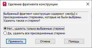 Это диалоговое окно используется для указания того, требуется ли удалять все смежные стержни выбранного сечения.