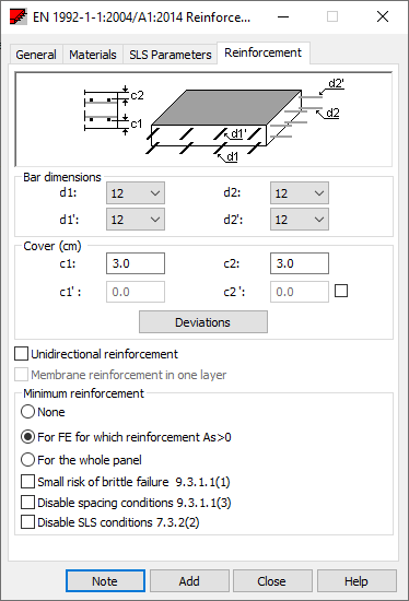 - Значения c1' и c2' — расстояния между верхней и нижней арматурой и плитой армирования соответственно равны в двух направлениях (по умолчанию они недоступны до тех пор, пока не выбраны).