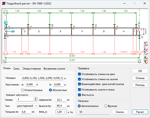 Программа позволяет выполнять следующие независимые раздельные расчеты на основе требований EUROCODE 3, Часть 5 (EN 1993-1-5:2024):