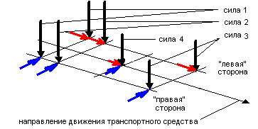 На рисунке внизу демонстрируется система сил, определяемая для транспортного средства.