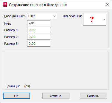Единицы измерения, заданные в нижней части диалогового окна нужно зависят от типа сечения (текущие единицы измерения сечения - выдуманные).