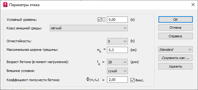 - Коэффициент ползучести бетона: параметр, используемый для автоматического расчета коэффициента ползучести.