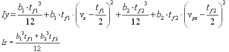 Моменты инерции относительно осей Y и Z соответственно сечения, которое состоит только из полок