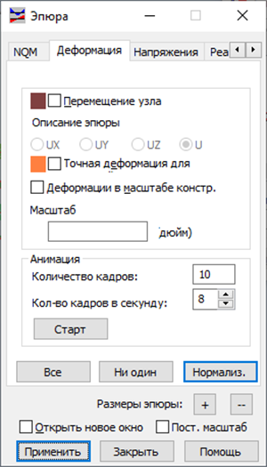 В этом окне выбирается способ представления деформации конструкции от приложенной нагрузки.