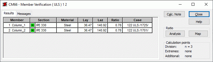 На вкладке Результаты диалогового окна "Проверка" отображаются результаты проверки или проектирования элементов из стали, дерева или алюминия или группы элементов.