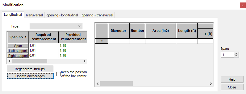 Для того чтобы начать изменения должен быть указан тип арматуры (это может сделать в таблице армирования или на графике), а параметры армирования должны быть изменены (например, диаметр стержня, длина отгиба, угол и т. д.).