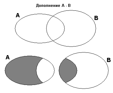 Эта операция схематически представлена на рисунке ниже (в форме операции с множествами).