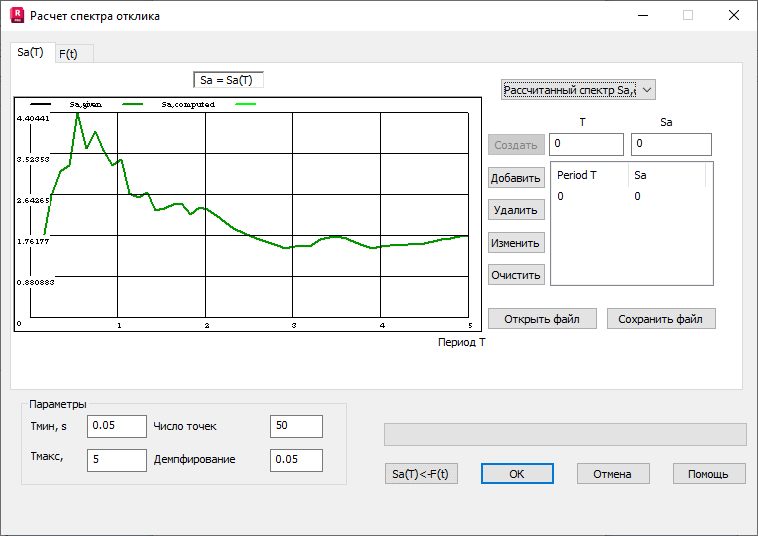 Вкладка содержит опции, позволяющие определить функцию Sa=Sa(T). Файл сохраняется в следующем формате.