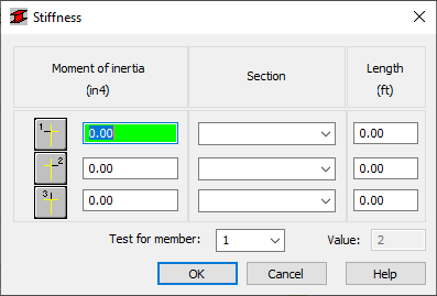 После выбора номера смежного элемента в нижней части диалогового окна проверяется коэффициент продольного изгиба. Значение коэффициента указывается в поле «Тест для стержня: значение».