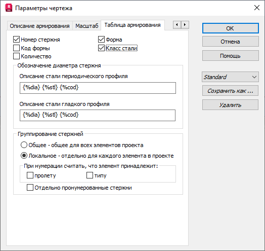 (Параметры чертежа) и перейдите на вкладку "Армирование".