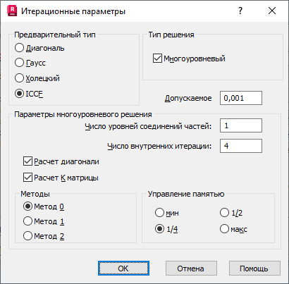 Это диалоговое окно используется для выбора параметров итерационного решателя.