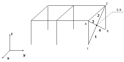 В этой конструкции определены следующие узлы и стержни (см. чертеж):