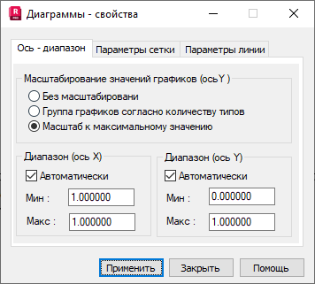 В нижней части диалогового окна пользователь может выбрать вид масштаба для графика: