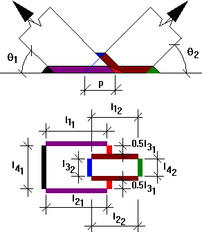 Для того случая, когда имеется расстояние между стержнями, принимается, что продольные участки швов (относительно оси пояса) полностью эффективны, а эффективность поперечных участков отличается. Участок 3 (внутренний сварной шов) наклонного стержня узла участвует в передаче силы от одного стержня на соседний участок, а участок 4 (внешний сварной шов) исключается из участия, при больших углах наклона.