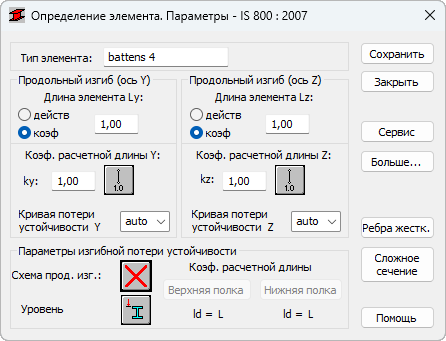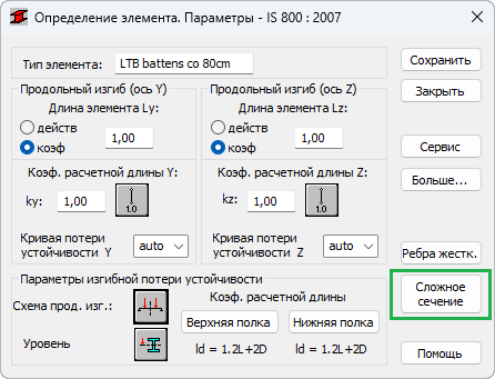 Для выполнения расчетов элементов с использованием правил для составных элементов согласно пункту 7.6 для переплетенных колонн или пункту 7.7 для колонн с планками норм IS800, выберите вариант Составные сечения в диалоговом окне Составное сечение (и убедитесь, что флажок «Без решетки» снят).