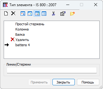 После выбора одного из типов решетки (Решетка 1, 2, 3) становятся доступными параметры для определения стержней решетки. Предполагается, что стойки и диагонали, как правило, имеют одинаковые сечения.