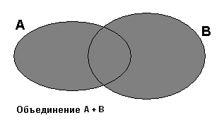 Эта операция схематически представлена на рисунке ниже (в форме операции с множествами).