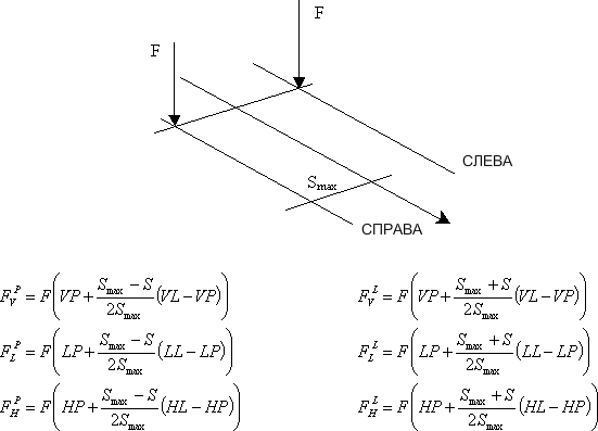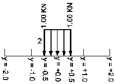 Процедура для поверхностных нагрузок аналогична процедуре для узловых и нагрузок на линиях за исключением того, что максимальная ширина нагрузки, используемая при интерполяции, должна вычисляться с учетом значений параметров S и DY.