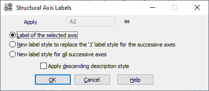 При включении этой опции имя выбранной оси принимается как шаблон для имен всех последующих осей конструкции. Названия всех последующих осей конструкции изменяются в соответствии с шаблоном, заданным пользователем.