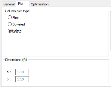 Если на вкладке "Общее" выбран отдельный фундамент с двумя колоннами, содержимое поля "Размеры" изменится. Все размеры показаны на схематическом чертеже стакана. После выбора опции "Фундамент с двумя колоннами" на вкладке "Основные" содержание вкладки "Стакан" изменяется (смотрите рисунок внизу). В поле Размеры становится доступной опция, позволяющая назначить геометрические размеры отдельно для каждого из стаканов.