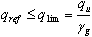Несущая способность грунта по данному методу принимается на основе заданного пользователем значения. Заданное пользователем допустимое (нормативное) значение qu, ПС1 или ПС2, всегда преобразуется в нормативное значение qu, а затем на основе этого значения рассчитывается предельное значение напряжения qlim по следующим формулам: