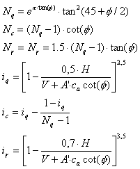 Безразмерные коэффициенты несущей способности имеют следующие значения: