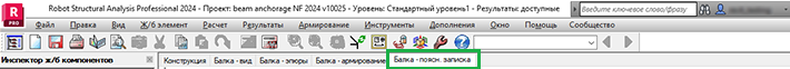 Для отображения дополнительной арматуры на рисунке откройте вкладку Балка — эпюры и под набором таблиц выберите Переключиться на: армирование.