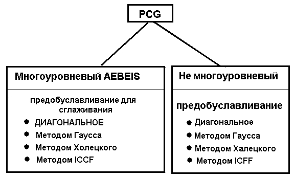 Метод градиентов с предобусловливанием (PCG) включает в себя несколько типов подготовки предварительных условий.