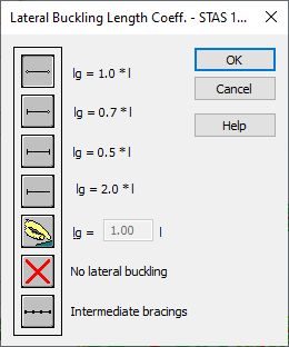 Этот параметр используется для определения требуемой длины сечения элементов, защищаемых от продольного изгиба — расчетной длины. Этот параметр становится доступным после нажатия одной из следующих кнопок: Верхняя полка или Нижняя полка в поле Параметры потери устойчивости диалогового окна Параметры определение элемента.