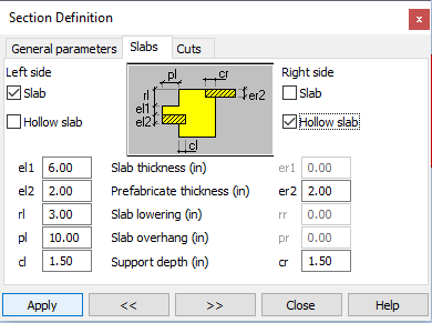 Если обе опции (Левая / Правая плита) неактивны, то автоматически вызывается прямоугольное сечение (при условии, что не были определены разрезы).