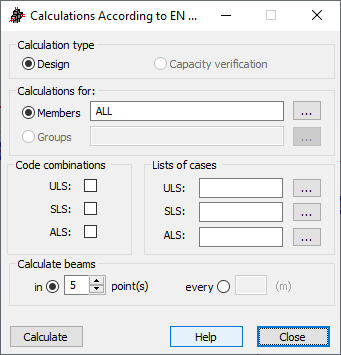 - определением числа расчетных точек по длине балки (мин. = 3, макс. = 100) с указанием единиц длины, которые будут использоваться в расчете. В качестве начальной точки выбирается точка, полученная с использованием опций диалогового окна Определение ж/б балки (Длина пролета и ширина опоры).