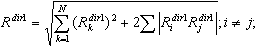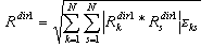 где Rdir1 репрезентативное максимальное значение особого отклика данного элемента на данный компонент землетрясения, определяемый как dir1; Rkdir1 - пиковое значение отклика элемента для k-й формы(k <-> s); N – число форм.