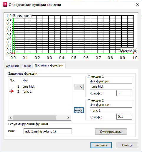 Прим.: Значение результирующей функции интерполируется в точках с общей абсциссой. Каждая из определенных функций может быть умножена на коэффициент, заданный пользователем.