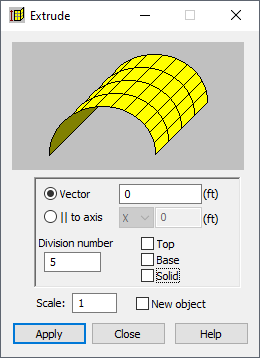 Эта опция используется для создания простых плоских или подобных твердому телу элементов при помощи экструдирования ранее определенных двумерных объектов.