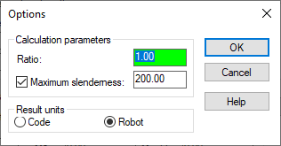 Диалоговое окно Опции позволяет устанавливать параметры для проверки стальных элементов. Эта опция активизируется нажатием на кнопку Опции в диалоговом окне Проверка вручную. Отображается следующее диалоговое окно: