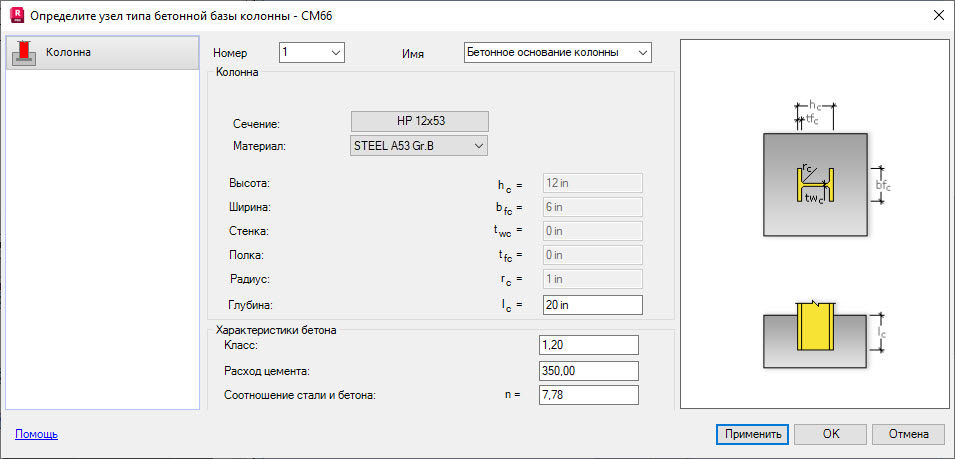 На вкладке "Колонна" задаются параметры колонны (т.е. сечение и материал).