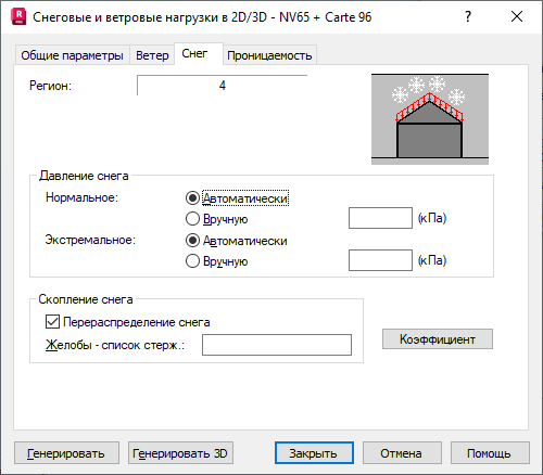 - Автоматически - автоматическое определение давления снега по параметрам расположения конструкции.