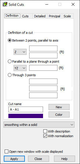 При переходе на вкладку "Определение" диалоговое окно Разрезы твердых тел выглядит так.