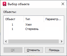 Оно содержит все объекты конструкции, расположенные вблизи области, где находился курсор при щелчке мышью. На данном примере имеется узел и стержни, но на нем также могут присутствовать и другие объекты, такие как дуги, полилинии и окружности. Чтобы выбрать объект, выделите его и нажмите "OK".