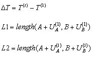 L2 = расстояние (A + U A , B + U B ),