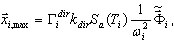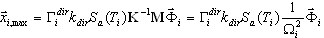 где K, M - матрица жесткости и матрица масс, Γ - коэффициент участия масс, Sа - спектральное ускорение, T - период, I - номер формы, k - коэффициент шкалы спектра, dir - индекс направления сейсмического движения (dir = X, Y, Z), x - вектор перемещения для максимальной реакции i-ой формы.