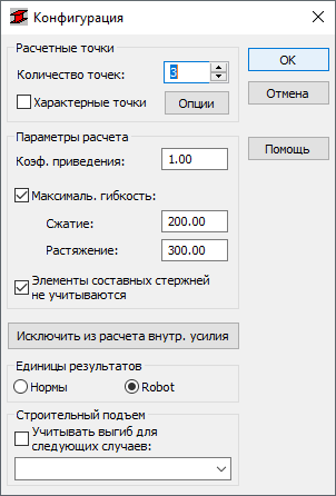 Если выбрана опция "Компоненты составных стержней не учитываются", то программа Robot не учитывает компоненты составных стержней при их расчете.