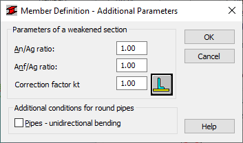 Этот параметр используется для задания дополнительных параметров норм для определенного типа стальных элементов. Для доступа к этой опции нажимают на кнопку Больше в диалоговом окне Определение элемента. Параметры