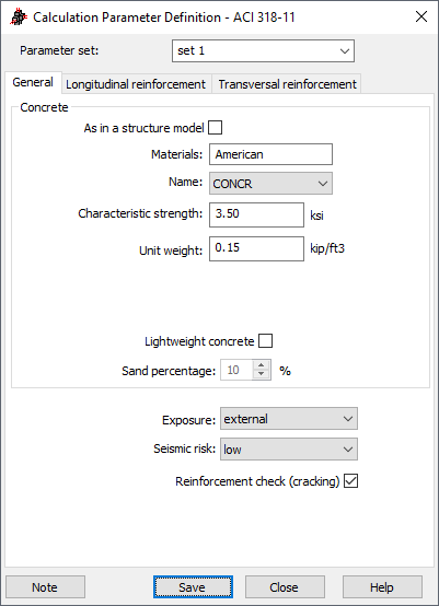 Прим.: Содержимое этого окна зависит от выбранных железобетонных норм. Для других норм внешний вид этого окна может отличаться от показанного выше.